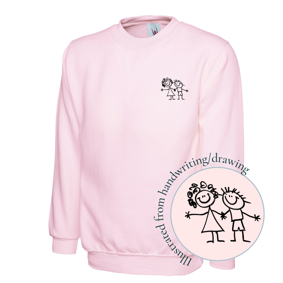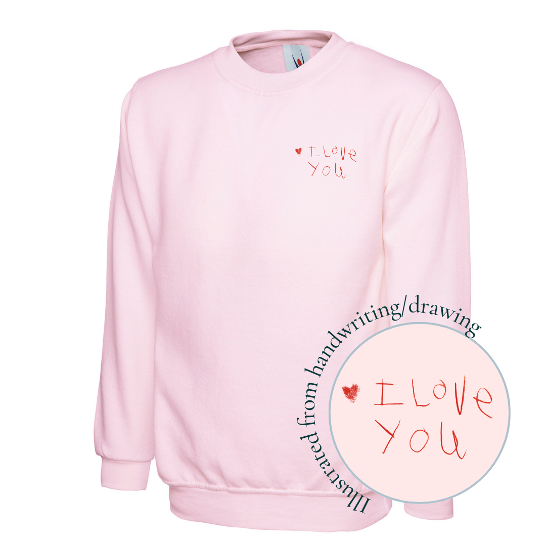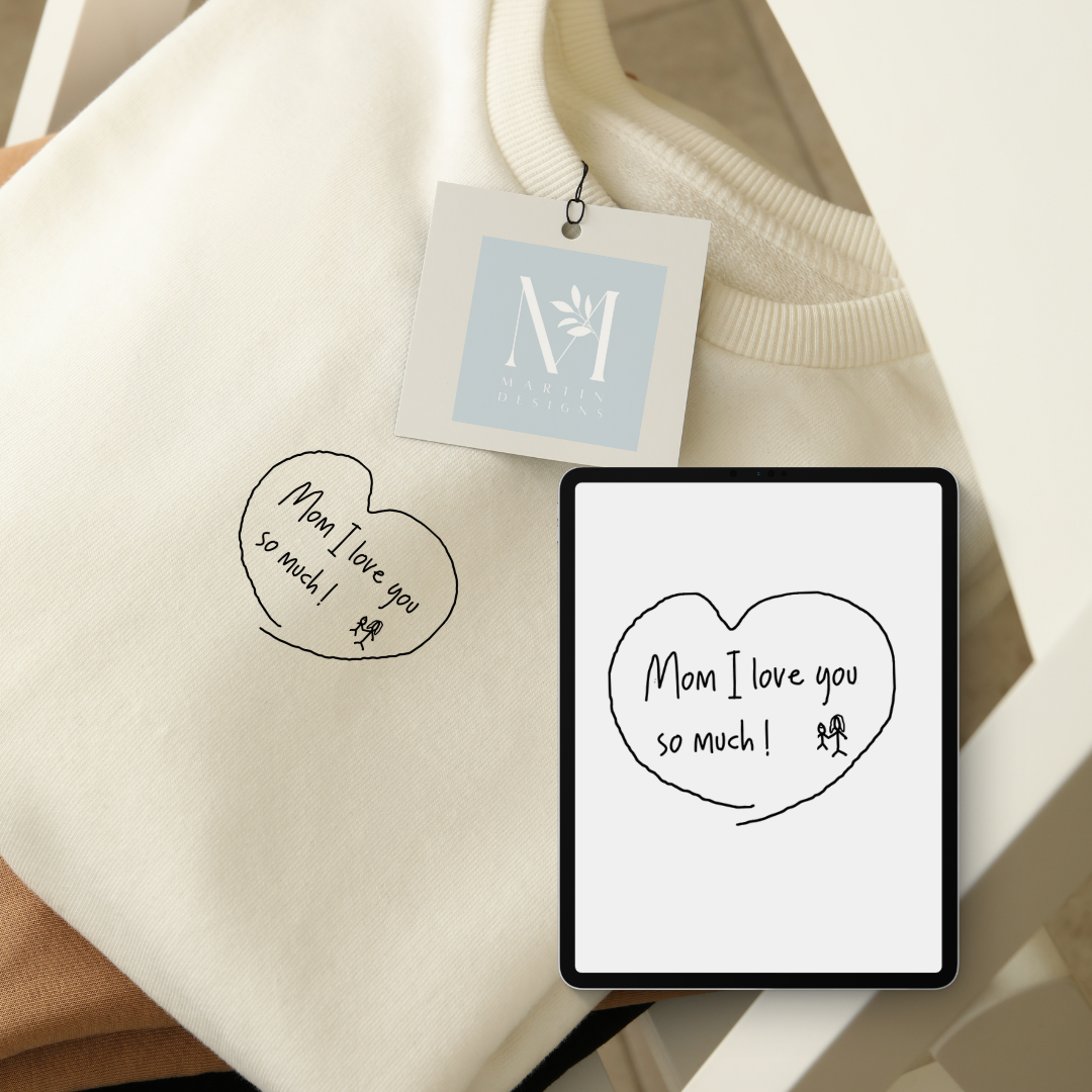 Get a one-of-a-kind sweatshirt featuring your child's artwork or a special handwritten message. Perfect for preserving special memories, from any loved one, young or old!