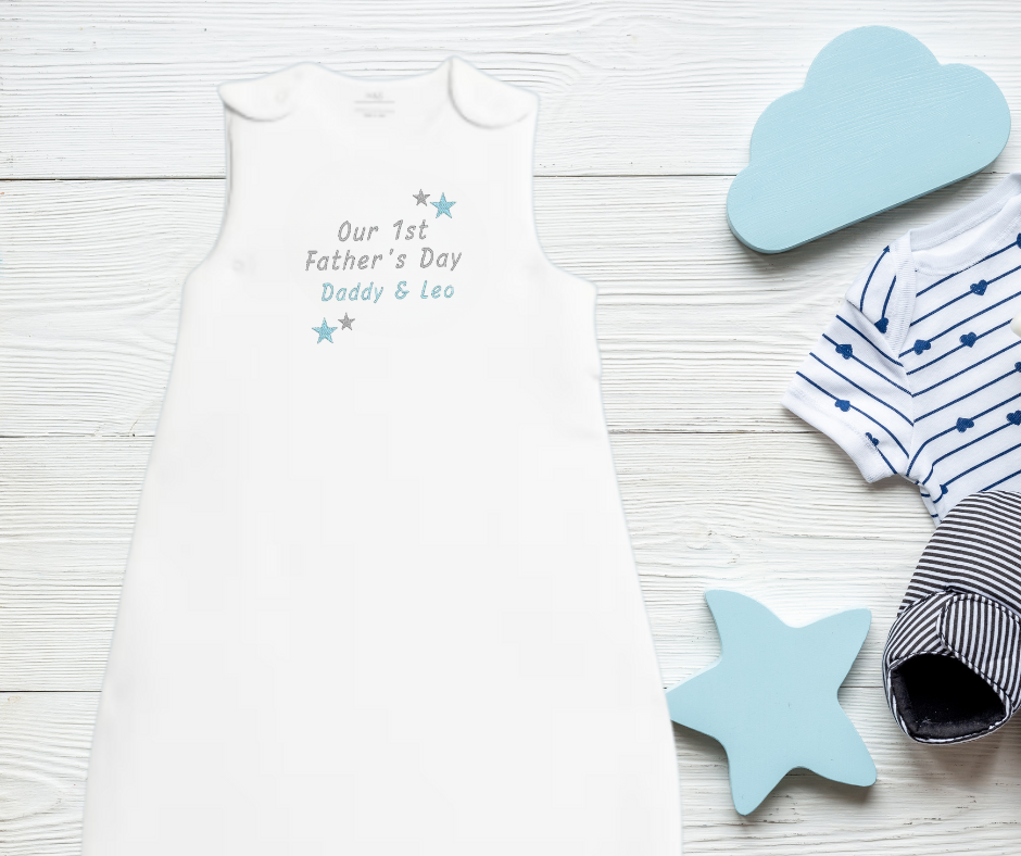 Introducing our Sleep bag, perfect for gifting with its decorative embroidered illustration of your choice. Made from soft, breathable fabric, this sleep bag is comfortable for little ones and can be personalized with any name of your choosing. Perfect to celebrate their 1st Fathers Day