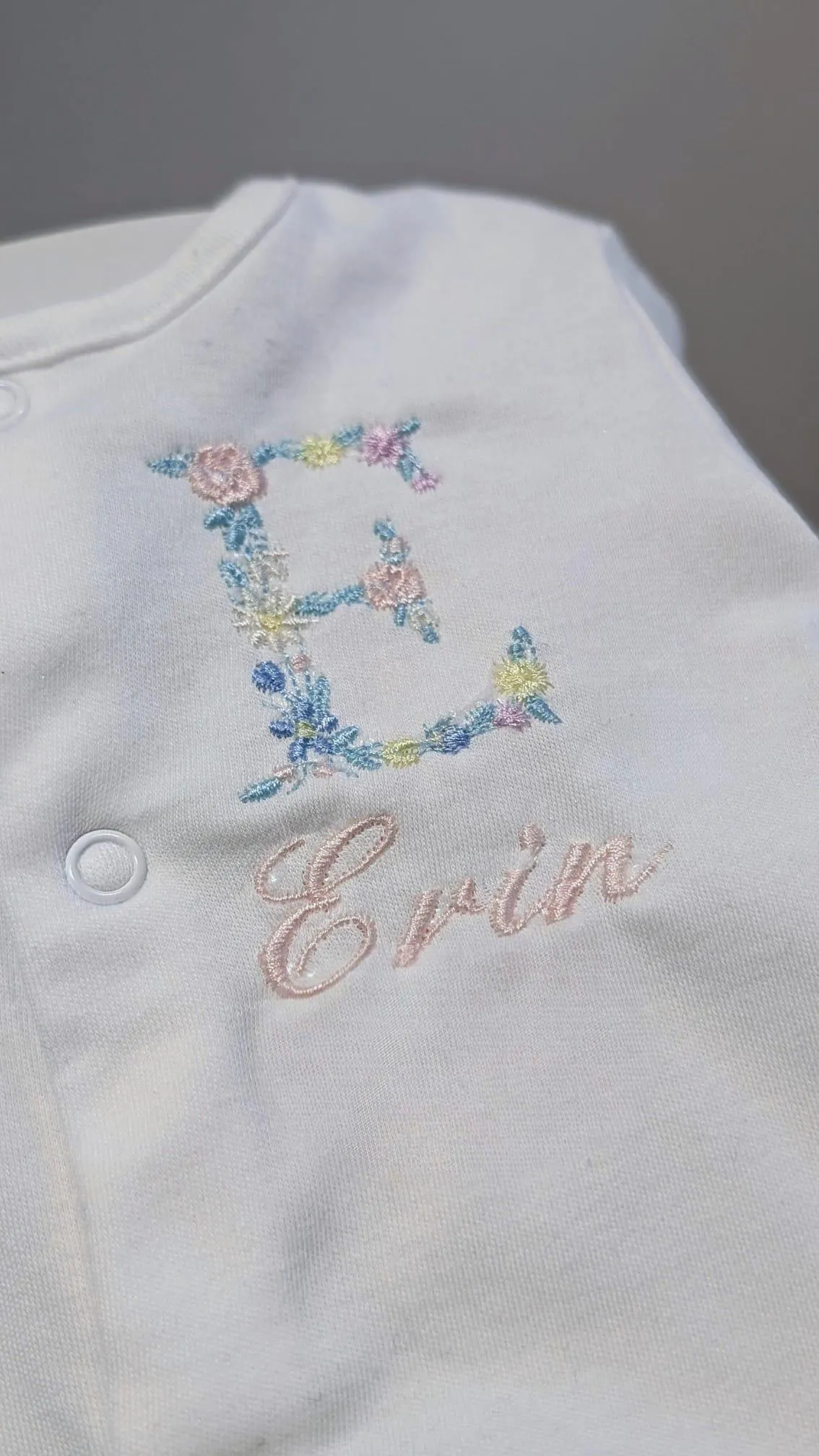 Introducing our Floral Monogram Sleepsuit, perfect for gifting with its decorative embroidered monogram. Made from soft, breathable fabric, this sleepsuit is comfortable for little ones and can be personalized with any letter and name of your choosing. Give a unique and thoughtful gift that will be cherished for years to come. Perfect for boys or girls. Floral Monogram comes as photographed, choose the colour of your name thread.