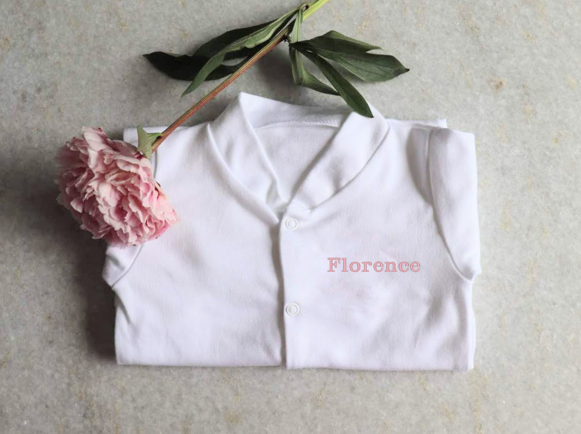 Introducing our Baby Name Sleepsuit, perfect for gifting with its decorative embroidered name feature and sweet love heart. Made from soft, breathable fabric, this sleepsuit is comfortable for little ones and can be personalized with any name of your choosing. Give a unique and thoughtful gift that will be cherished for years to come. Perfect for boys or girls.
