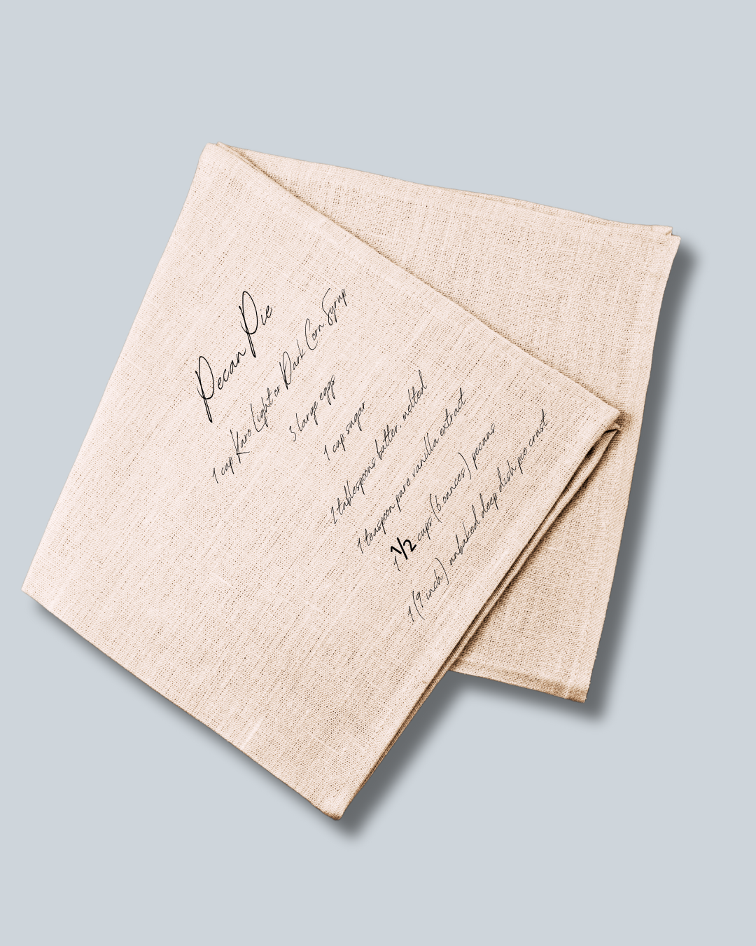 Create a unique and personalized touch to your kitchen with our Personalized Tea Towel. This embroidered tea towel features your family's treasured recipe in its original handwriting, adding a sentimental element to your cooking routine. Simply send us a photo and receive a 4x8" towel to cherish for years to come.